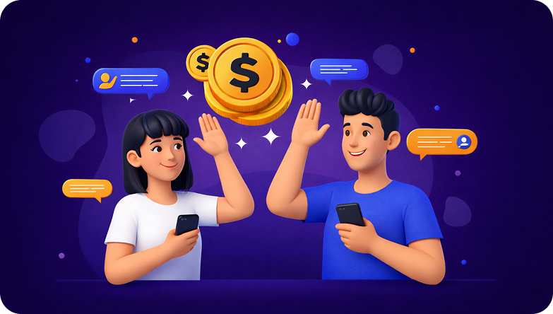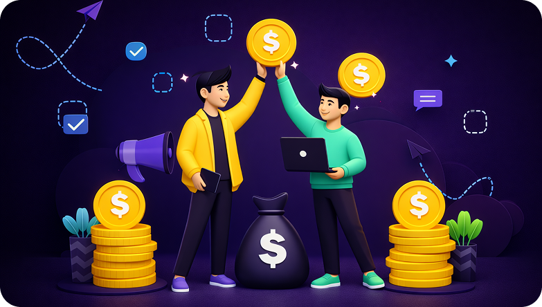 You earn from multiple streams: Host fees for each game session, In-game Affiliate commissions, and referral rewards. Most importantly, your games generate passive income as long as your audience continues to play.